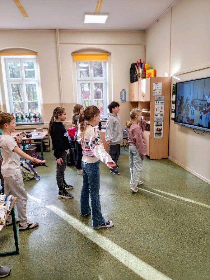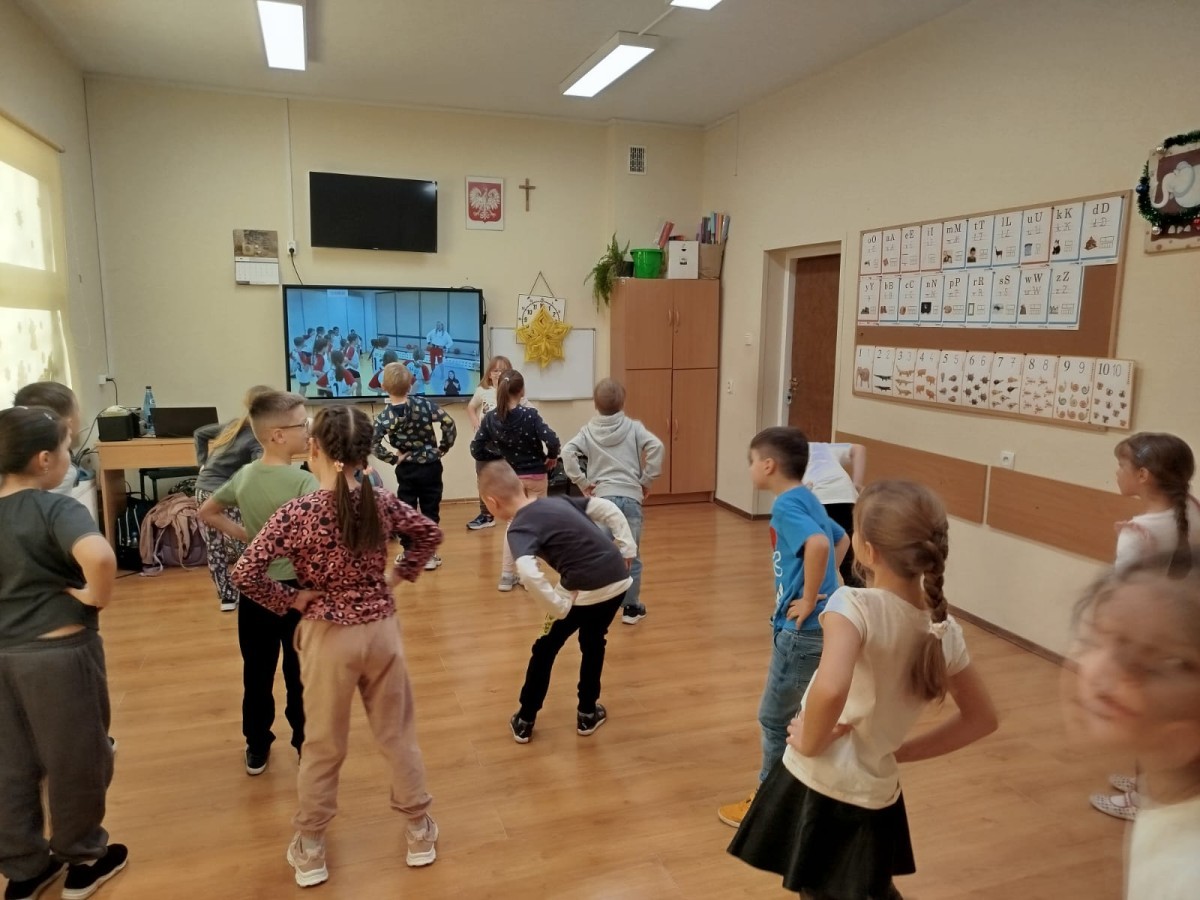 Klasy ćwiczyły w swoich salach oraz na świetlicy. Prowadzący zajęcia uruchomili transmisję poprzez wcześniej przesłany link.