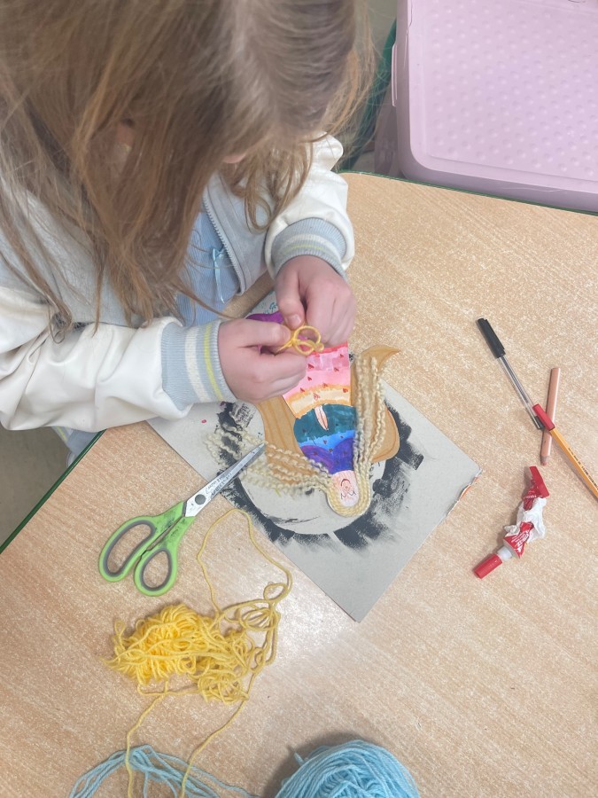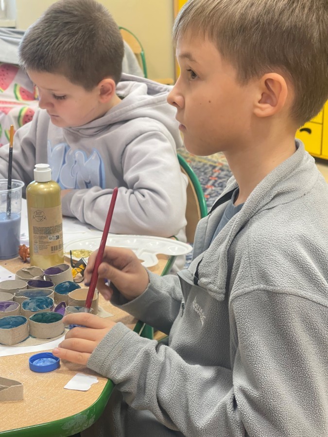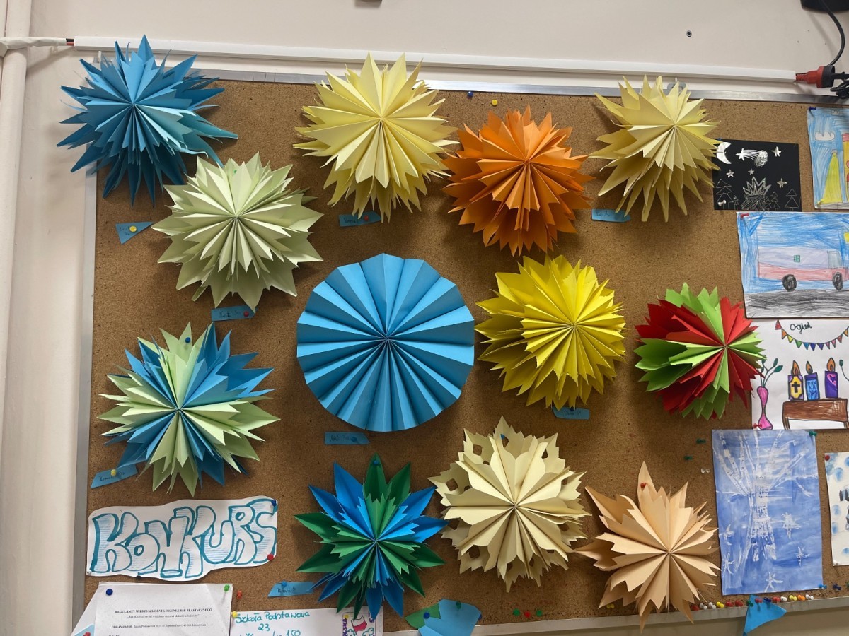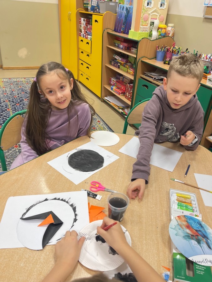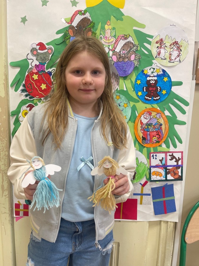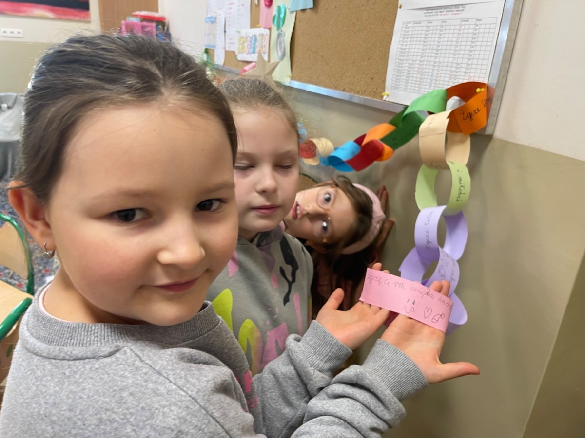 Tworzymy gwiazdy i anioły oraz pingwinki. Dekorujemy świetlice łańcuchem życzeń.