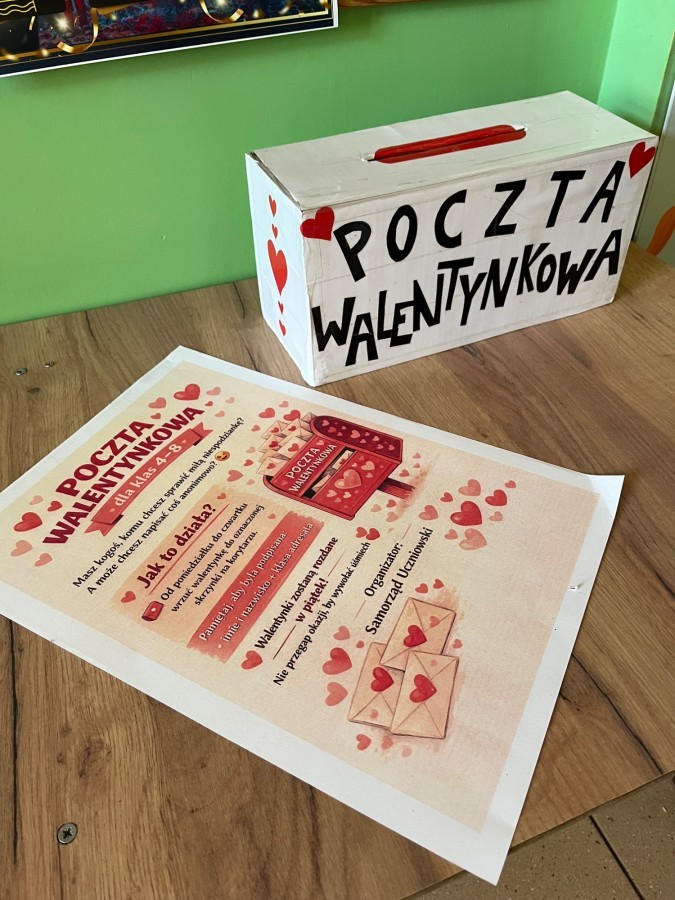 Na początku miesiąca, od 3 do 12 lutego, uczniowie klas 4–8 mogli wziąć udział w Poczcie Walentynkowej. Każdy mógł wysłać walentynkę do wybranej osoby – anonimowo lub podpisaną. Wszystkie kartki, które trafiły do specjalnie przygotowanej skrzynki na korytarzu, zostały rozdane w piątek 14 lutego. Uśmiech na twarzach odbiorców pokazał, że nawet drobny gest potrafi wywołać wiele radości i pozytywnej energii wśród uczniów.