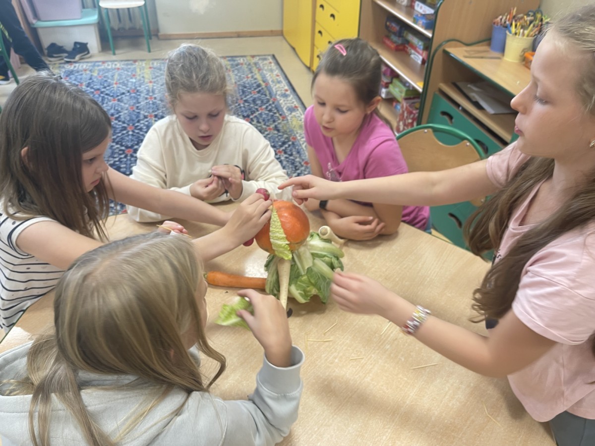 Warzywa w nowej odsłonie na warsztatach w świetlicy.
