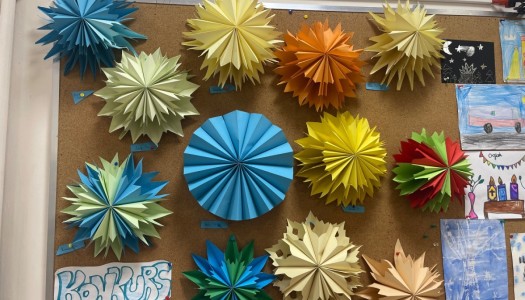 Tworzymy gwiazdy i anioły oraz pingwinki. Dekorujemy świetlice łańcuchem życzeń.
