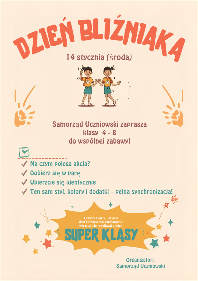 W styczniu odbył się pełen uśmiechu Dzień Bliźniaka, skierowany do uczniów klas 4–8.